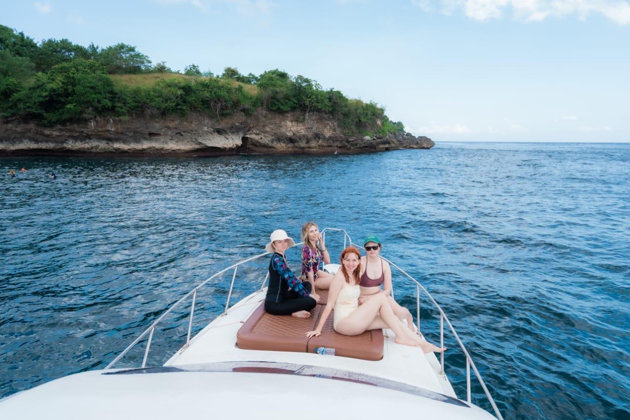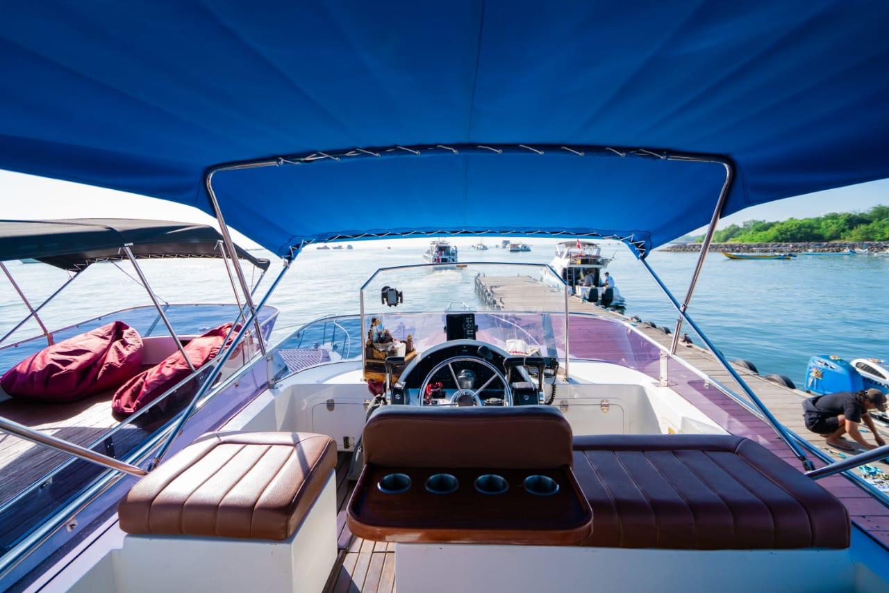 Queen Ruzi is a 13-meter private charter boat designed for comfortable day trips and ocean adventures around Bali and nearby islands. Powered by triple Suzuki 200hp engines, this vessel delivers both speed and stability while accommodating up to 15 guests.