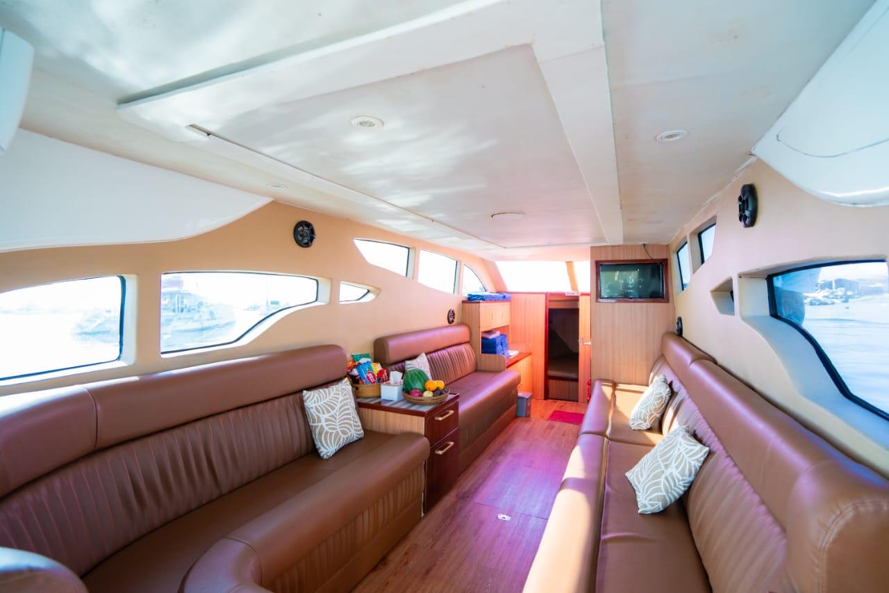 Featuring a berth, air-conditioned cabin, sound system, and onboard toilet & shower, Queen Ruzi offers a relaxing experience on the water. Equipped with snorkeling and fishing gear, modern Raymarine navigation, and a professional captain and crew, it is a perfect choice for full-day or half-day cruises with family or friends.